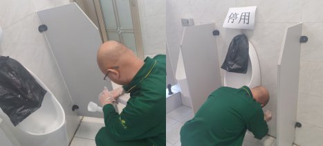 一楼男厕小便池下水管道因污垢长期淤积,导致频繁堵塞、污水外溢且异味滋生,此前多次处置都未彻底解决。当堵塞再次发生时孙晓洁决定彻底解决问题,他顶着刺鼻异味拆解旧管道、蹲在小便池旁清理淤积杂物,为了清理干净甚至还要跪地作业。经过不懈努力,堵塞的小便池终于恢复正常使用,彻底解决了小便池的卫生顽疾与使用困扰。
